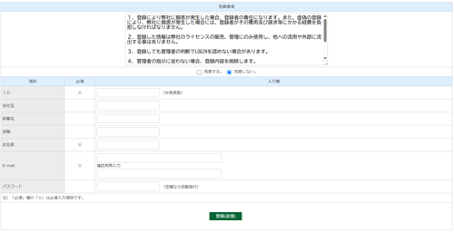 会員登録後、入力頂いたメールアドレスにログイン用の「ID」「パスワード」をお送りします。